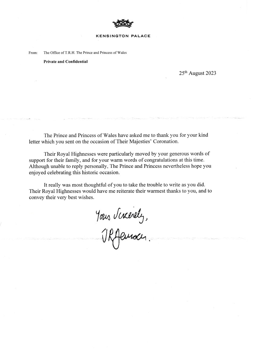 Royal responses from Their Royal Highnesses The Prince and Princess of Wales on the occasion of the coronation of Charles and Camilla, The King and Queen of; Antigua and Barbuda; Australia; The Bahamas; Belize; Canada; Grenada; Jamaica; New Zealand; Papua New Guinea; Saint Kitts and Nevis; Saint Lucia; Saint Vincent and the Grenadines; Solomon Islands; Tuvalu; The United Kingdom.