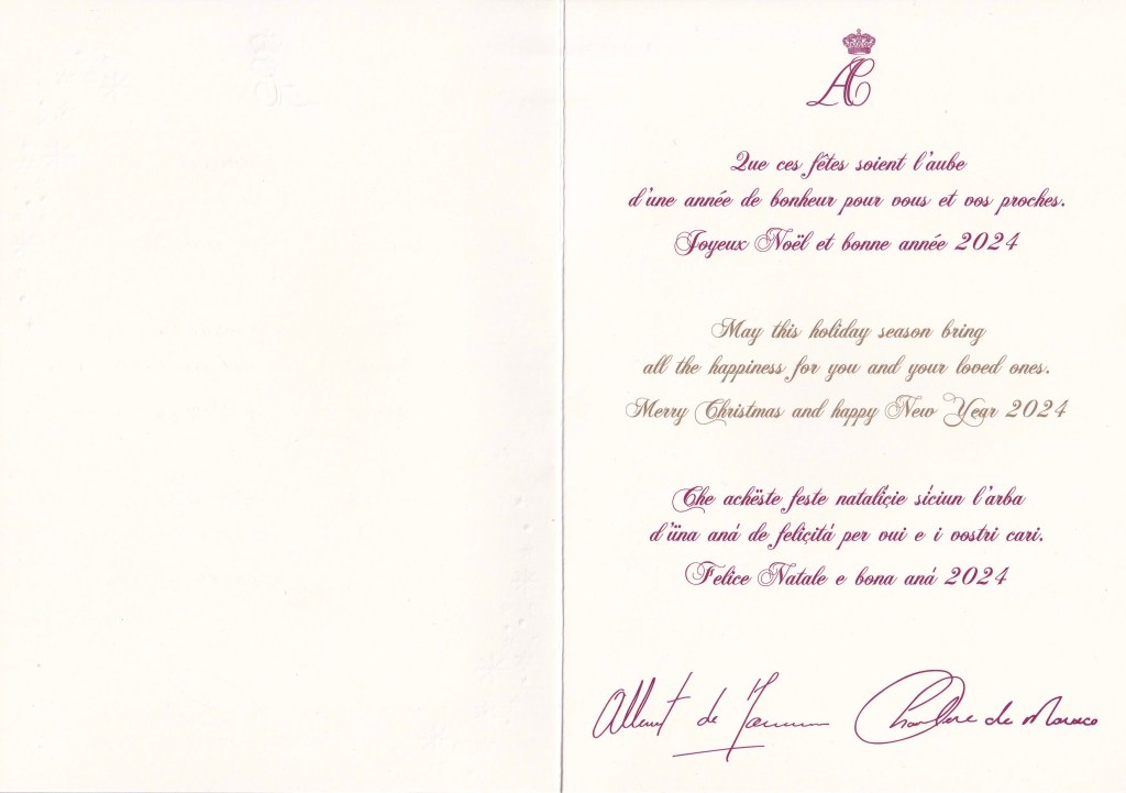 Royal response from Their Serene Highnesses The Prince and Princess of Monaco on the occasion of Christmas 2023 and the New Year 2024.