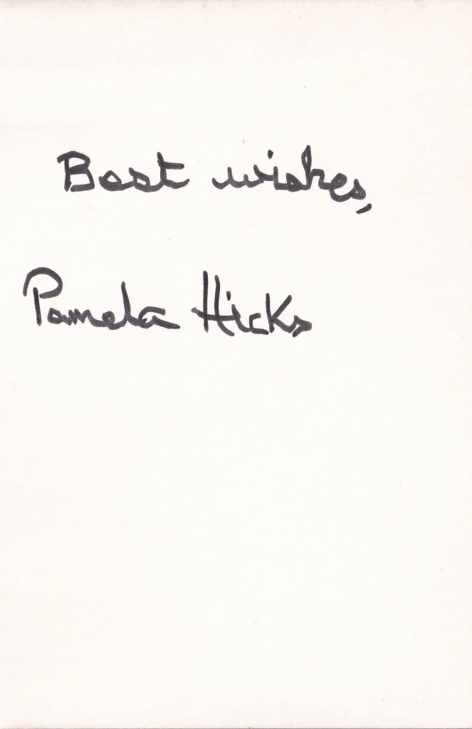 The reply is in the form of a card which inside is hand signed by Lady Pamala Hicks.