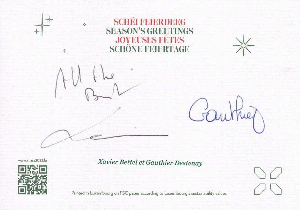 Response from The Prime Minister of Luxembourg on the occasion of Christmas 2023 and the New Year 2024.