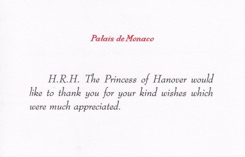 Royal response from Her Royal Highness The Princess of Hanover on the occasion of her 67th birthday.