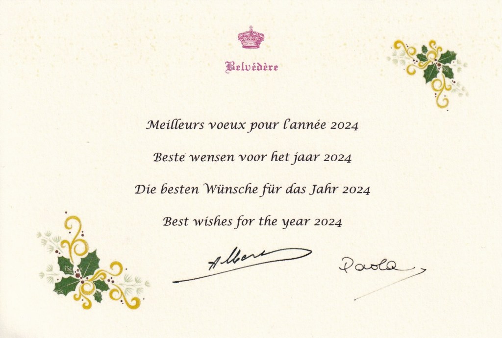 Royal response from Their Majesties King Albert II and Queen Paola of Belgium on the occasion of Christmas 2023 and the New Year 2024.