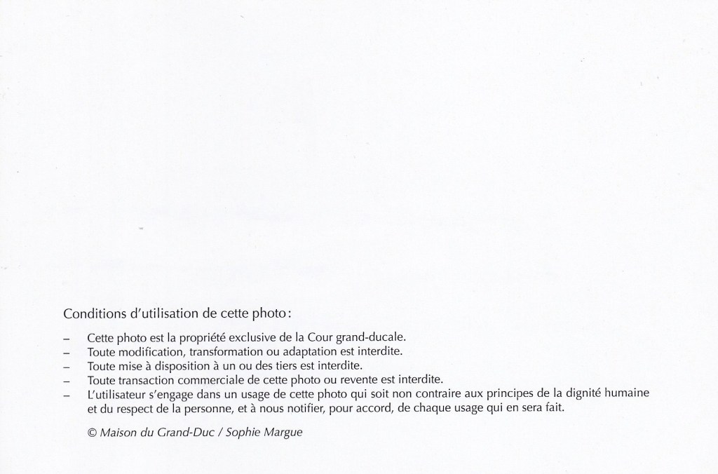 The reply is in the form of a card in Luxembourgish thanking me for my good wishes and wishing me the best and also included is a picture of His Royal Highness by Sophie Margue.