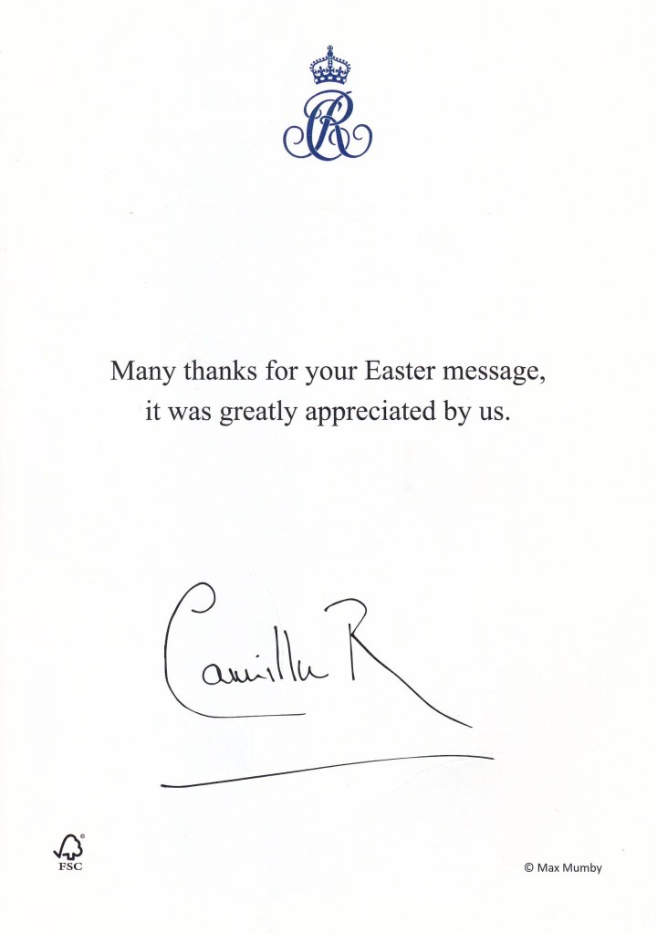 Royal response from Her Majesty The Queen of The United Kingdom on the occasion of Easter 2023.