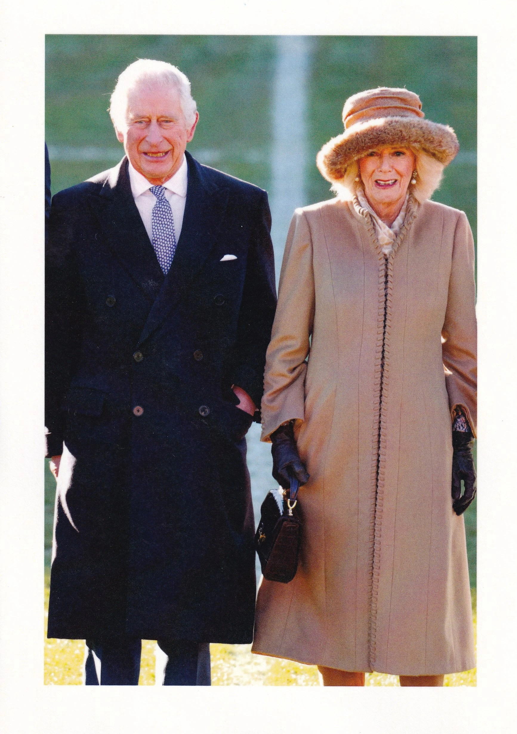 The reply is in the form of a card which on the front has a picture of Their Majesties taken by Max Mumby during a visit to Bronwen Stadium in Wrexham, Their Majesties were in Wrexham as it officially received City Status and on the reverse is a message in English with the printed signature of The Queen.
