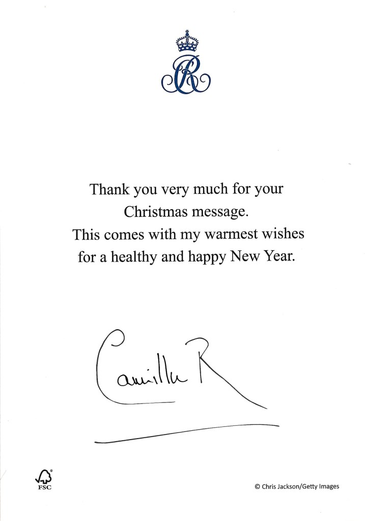 Royal response from Her Majesty The Queen of The United Kingdom on the occasion of Christmas 2023 and the New Year 2024.