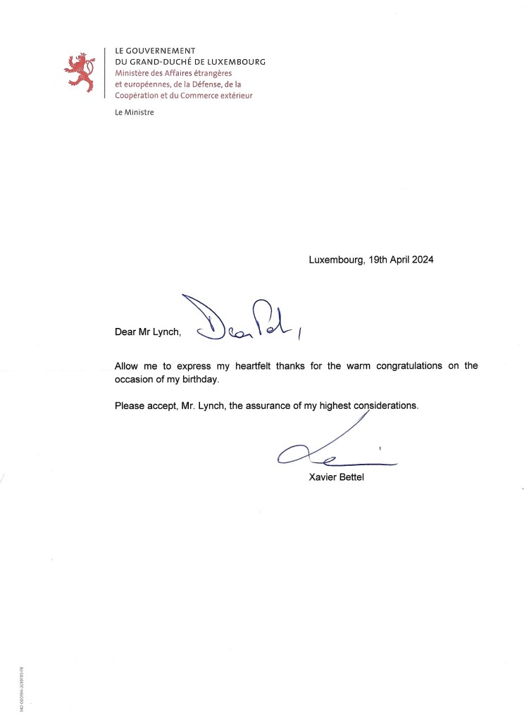 Response from Xavier Bettel, The Prime Minister of Luxembourg on the occasion of his 51st birthday.