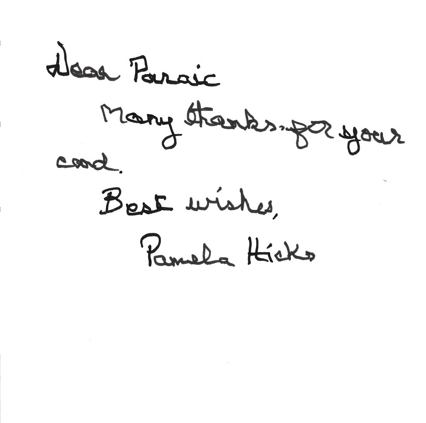 The reply is in the form of a card handwritten and hand signed and thanks me for my birthday wishes.