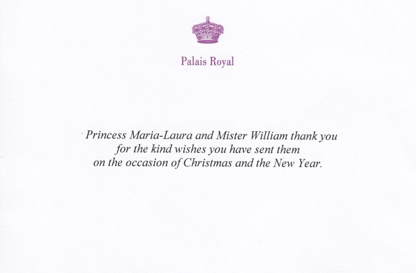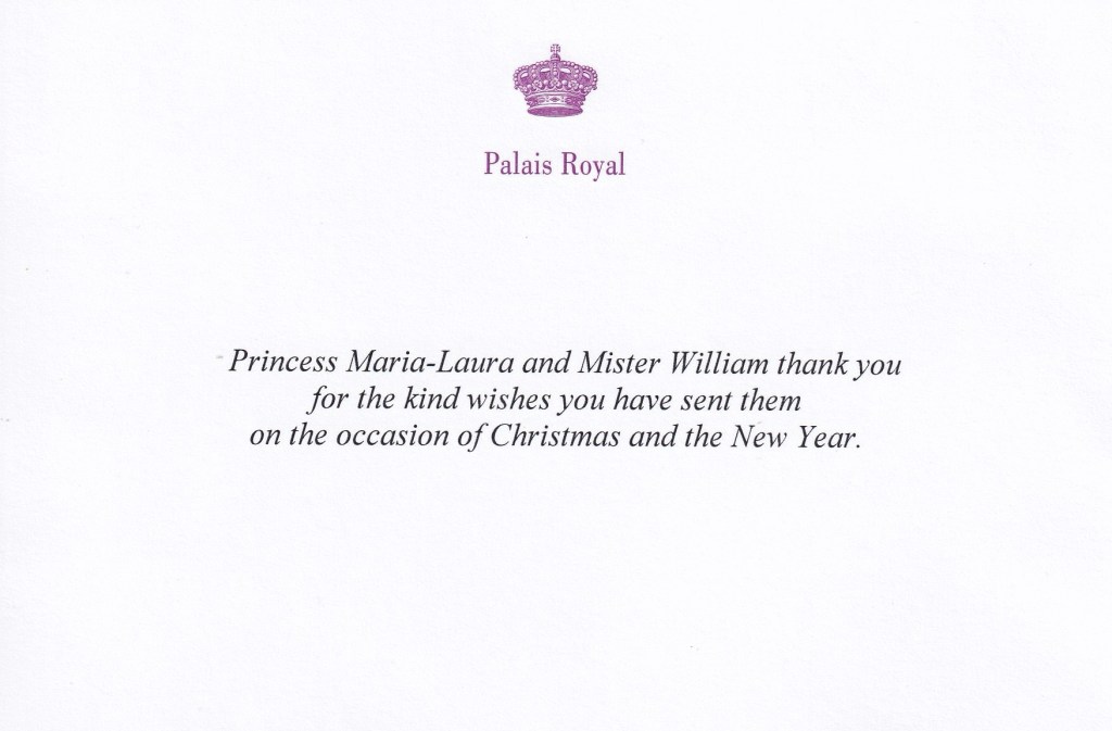Royal responses of Her Imperial and Royal Highness Princess Maria Laura of Belgium, Archduchess of Austria-Este and Mr. William Isvy on the occasion of Christmas 2024 and the New Year 2025.
