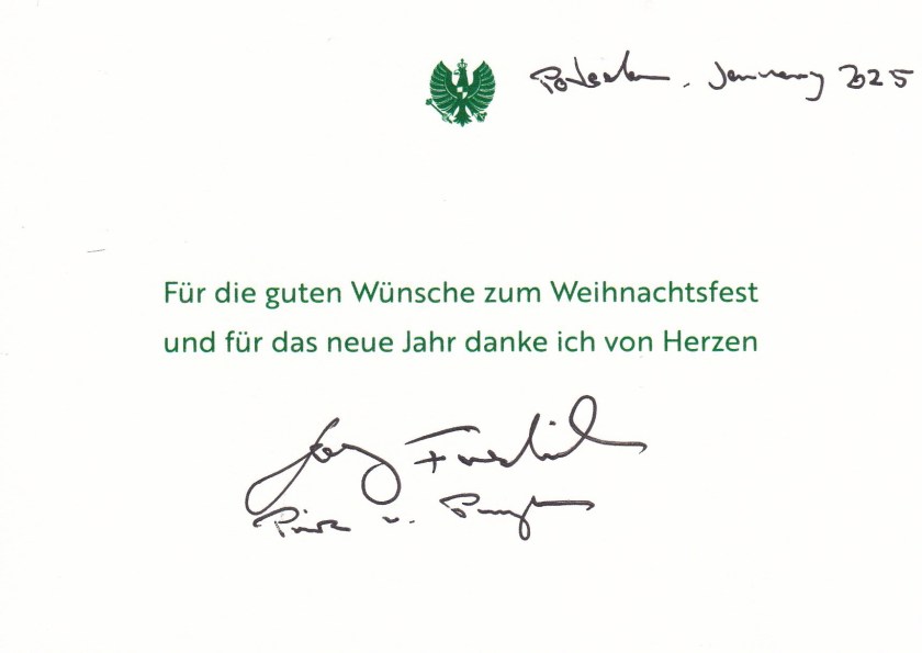 Royal response from Their Imperial and Royal Highnesses The Prince and Princess of Prussia on the occasion of Christmas 2024 and the New Year Year 2025.