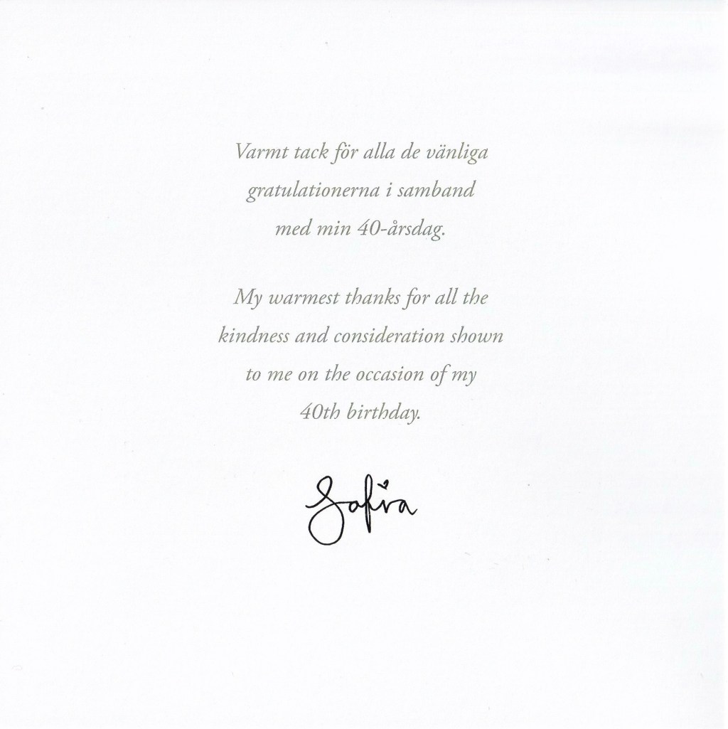 Royal response from Her Royal Highness Princess Sofia of Sweden, Duchess of Värmland on the occasion of her 40th birthday.