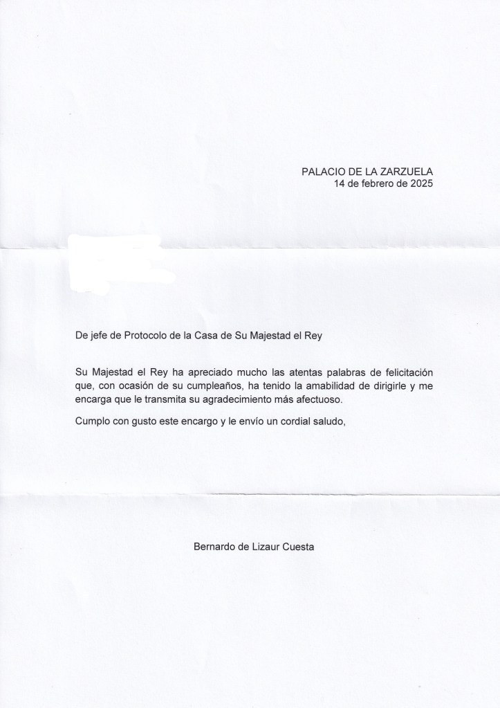 Royal response from His Majesty The King of Spain on the occasion of his 57th birthday.