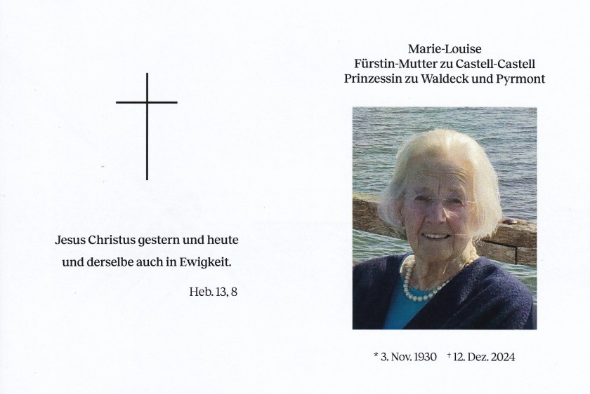 Royal response on the Passing of Her Serene Highness The Dowager Princess of Castell-Castell.