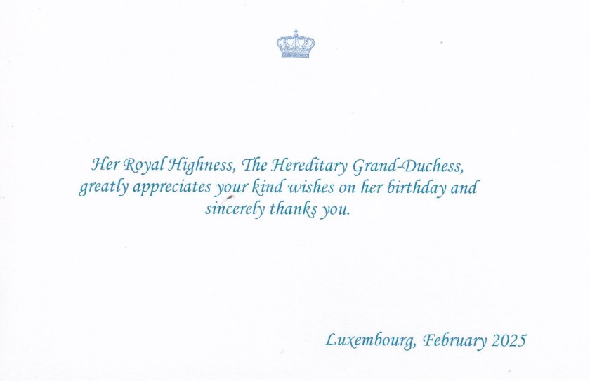Royal response from Her Royal Highness The Hereditary Grand Duchess of Luxembourg on the occasion of her 41st birthday.