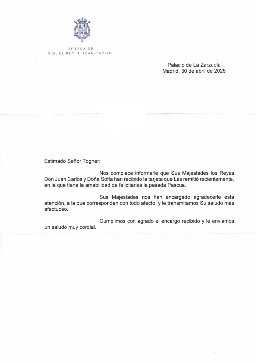 Royal response from Their Majesties King Juan Carlos I and Queen Sofia of Spain on the occasion of Easter 2025.