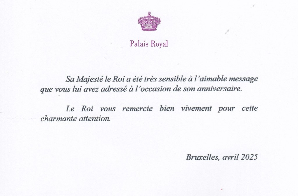 Royal response from His Majesty The King of The Belgians on the occasion of his 65th birthday.