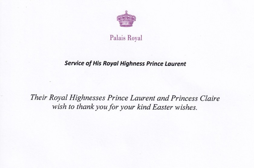 Royal response from Their Royal Highnesses Prince Laurent and Princess Claire of Belgium on the occasion of Easter 2025.