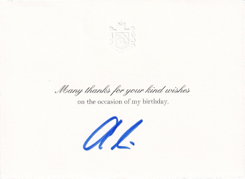 Royal response from His Serene Highness The Hereditary Prince of Liechtenstein on the occasion of his 57th birthday.