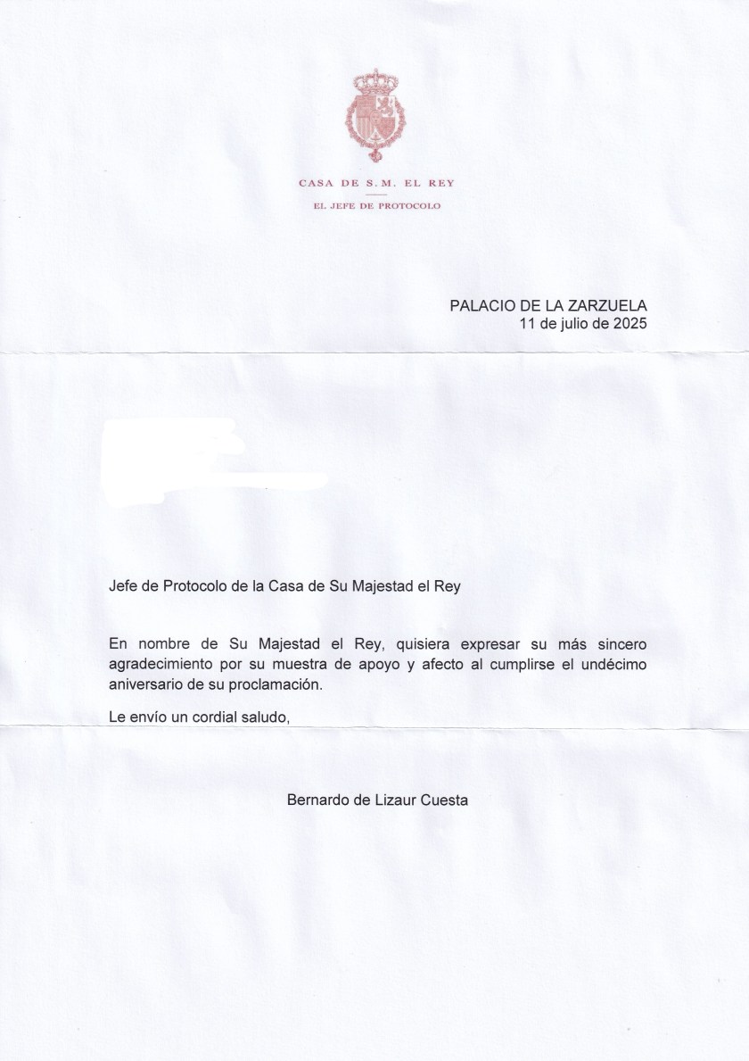 Royal response from His Majesty The King of Spain on the occasion of his 11th accession anniversary.