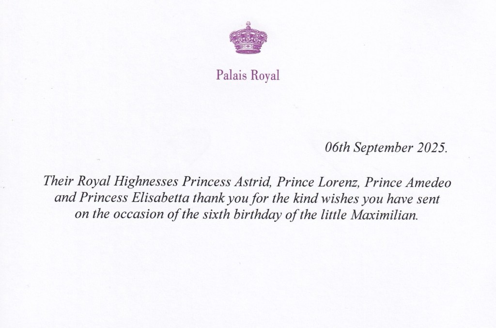 Royal response from Their Imperial and Royal Highnesses Prince Lorenz and Princess Astrid of Belgium The Archduke and Archduchess of Austria-Este and Prince Amedeo and Princess Elisabetta of Belgium, Archduke and Archduchess of Austria-este on the occasion of His Imperial and Royal Highness Archduke Maximilian of Austria-Este’s 6th birthday.