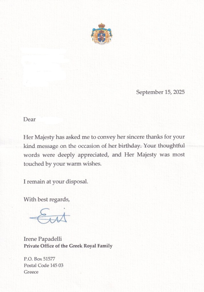 The reply is in the form of a letter in English thanking me for my birthday wishes.
