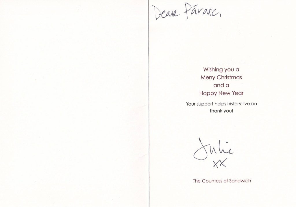 Response from Lady Sandwich on the occasion of Christmas 2025 and The New Year 2026. Lady Sandwich sent the card to all those who are patrons of American Countess on Patreon.