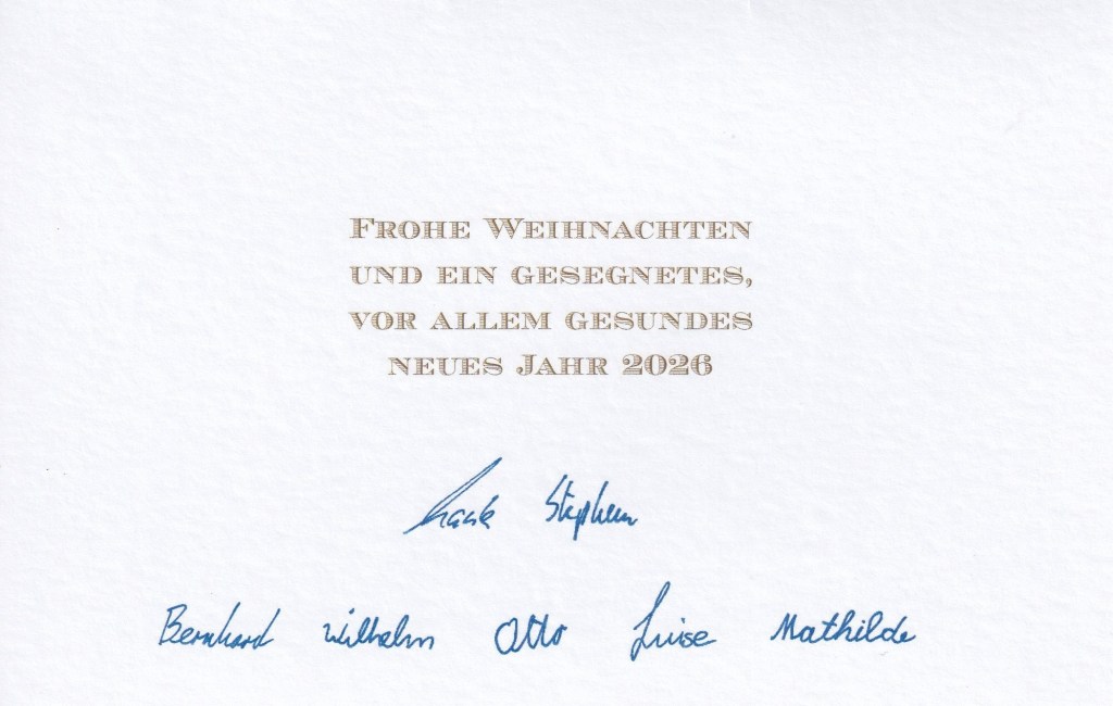 Royal response from Their Serene Highnesses The Prince and Princess de Lippe on the occasion of Christmas 2025 and New Year 2026.