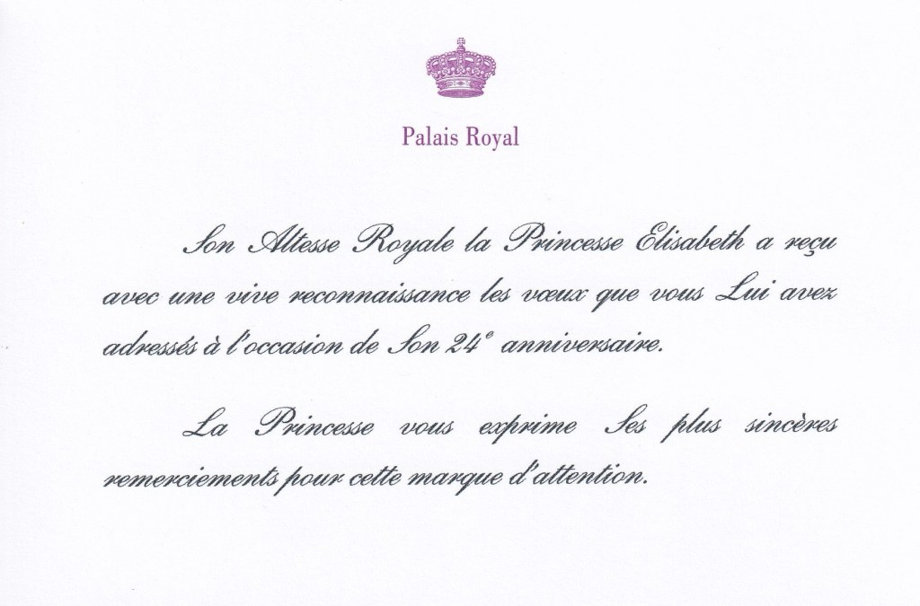 Royal response from Her Royal Highness The Duchess of Brabant on the occasion of her 24th birthday.