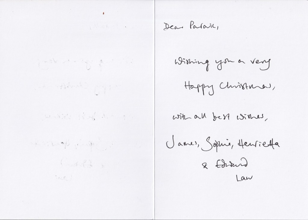 Response from The Honourable James and Sophie Law on the occasion of Christmas 2025 and New Year 2026.