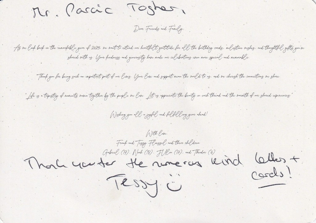 Response from Tessy Antony-de Nassau and Frank Floessel on the occasion of Christmas 2025 and the New Year 2026.