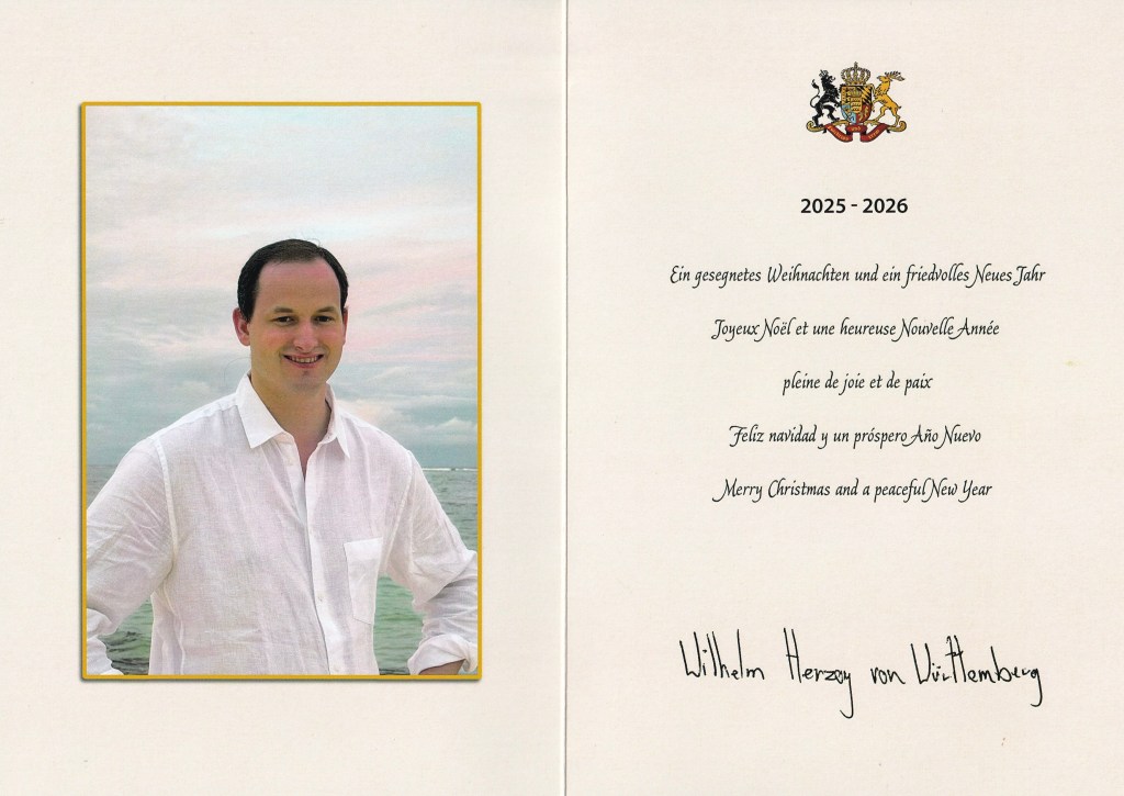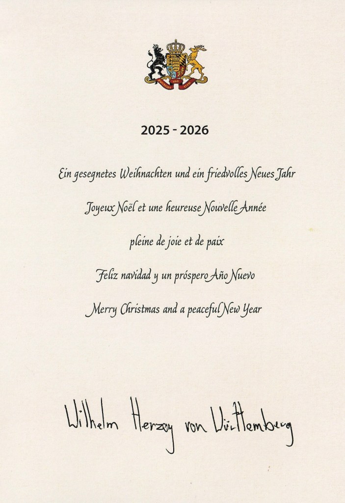 Royal response from His Royal Highness The Duke of Württemberg on the occasion of Christmas 2025 and New Year 2026.