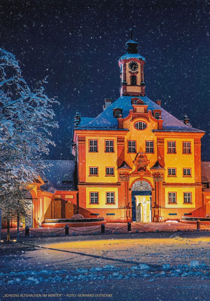The reply is in the form of a card which on the outside has a picture of a winter scene of Schloss Altshausen, inside is a picture of His Royal Highness and a message in German, Italian, Spanish and English wishing me a Merry Christmas and a Happy New year.