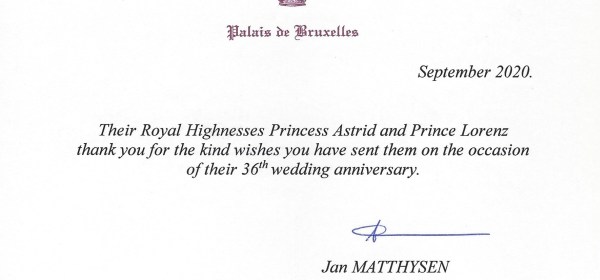 Royal response from Their Imperial and Royal Highness Prince Lorenz and Princess Astrid of Belgium, The Archduke and Archduchess of Austria-Este on the occasion of