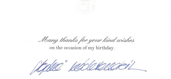 Royal response from Her Royal Highness The Hereditary Princess of Liechtenstein on the occasion of her 53rd Birthday. Born Princess Sophie in Bavaria (later Duchess Sophie in