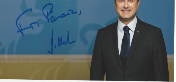 Response from the Xavier Bettel the Prime Minister of Luxembourg. The reply is in the form of a signed photo by the Prime Minister.
