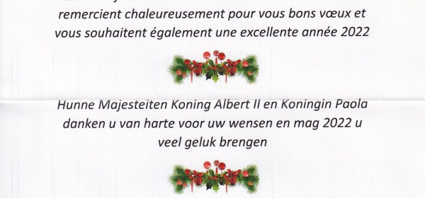 Royal response from Their Majesties King Albert II and Queen Paola of Belgium on the occasion of Christmas 2022 and the New Year 2022 The