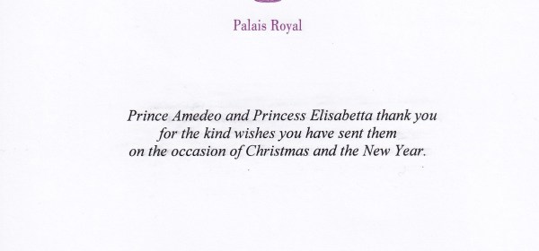 Royal response from Their Imperial and Royal highness Prince Amedeo and Princess Elisabetta of Belgium, Archduke and Archduchess of Austria-Este on the occasion of Christmas