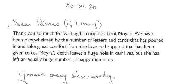 Response from Commander Peter Campbell on the passing of his wife lady Moyra Campbell. Born Moyra Kathleen on 22nd July 1930 the only daughter and