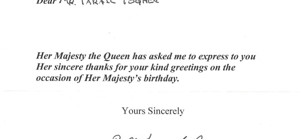Royal Response from Queen Margrethe II of Denmark on the occasion of her 78th birthday. The reply is a a letter in English signed by