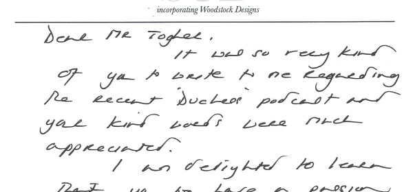 Response from Her Grace The Duchess of Rutland in response to a letter about her new Podcast Duchess. Her Grace is married to David Manners,