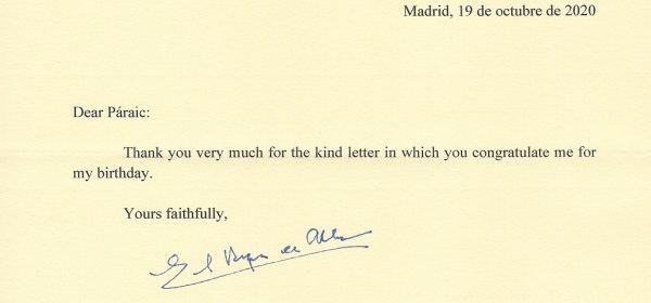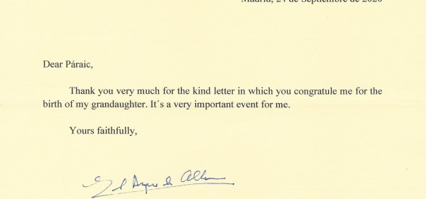 Response from The Most Excellent The Duke of Alba on the occasion of Easter 2021. The reply is in the form of a letter thanking