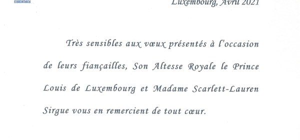 Royal; response from His Royal Highness Prince Louis of Luxembourg and Miss Scarlett-Lauren Sirgue on the occasion of their engagement. Prince Louis of Luxembourg born