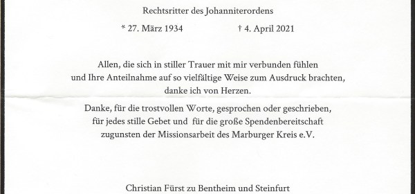 Royal response from His Serene Highness Christian, The 4th prince zu Bentheim und Steinfurt on the passing of his brother Prince Reinhard Georg zu Bentheim