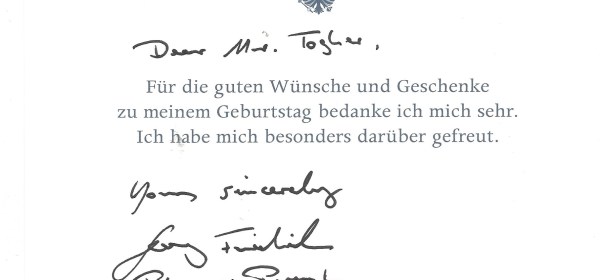 Royal response from His Imperial and Royal Highness The Prince of Prussia on the occasion of his 43rd birthday. The reply is a card in