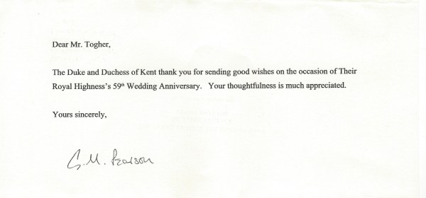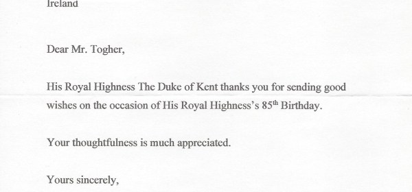 Royal response from his Royal Highness Prince Edward, The 2nd Duke of Kent on the occasion of his 85th Birthday. Born Edward George Nicholas Paul