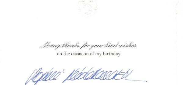 Christmas response from His Serene Highness The Hereditary Prince of Liechtenstein and Her Royal Highness The Hereditary Princess of Liechtenstein. The card is in the