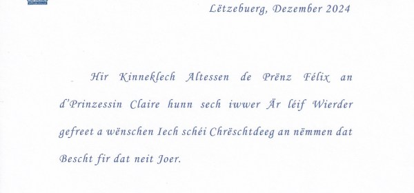Royal responses from Her Royal Highness Princess Alexandra of Luxembourg and Mr. Nicolas Bagory on the occasion of Christmas 2024 and the New Year 2025.
