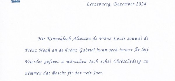 Royal response from His Royal Highness Prince Louis of Luxembourg and his children Prince Gabriel and Prince Noah de Nassau on the occasion of Christmas