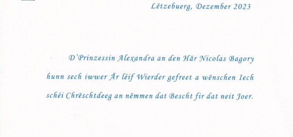 Royal responses from Her Royal Highness Princess Alexandra of Luxembourg and Mr. Nicolas Bagory on the occasion of Christmas 2023 and the New Year 2024.