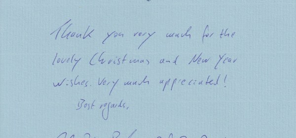 Royal response from Prince Joachim and Princess Angelina of Prussia on the occasion of Christmas 2021 and the New Year 2022. The reply is in